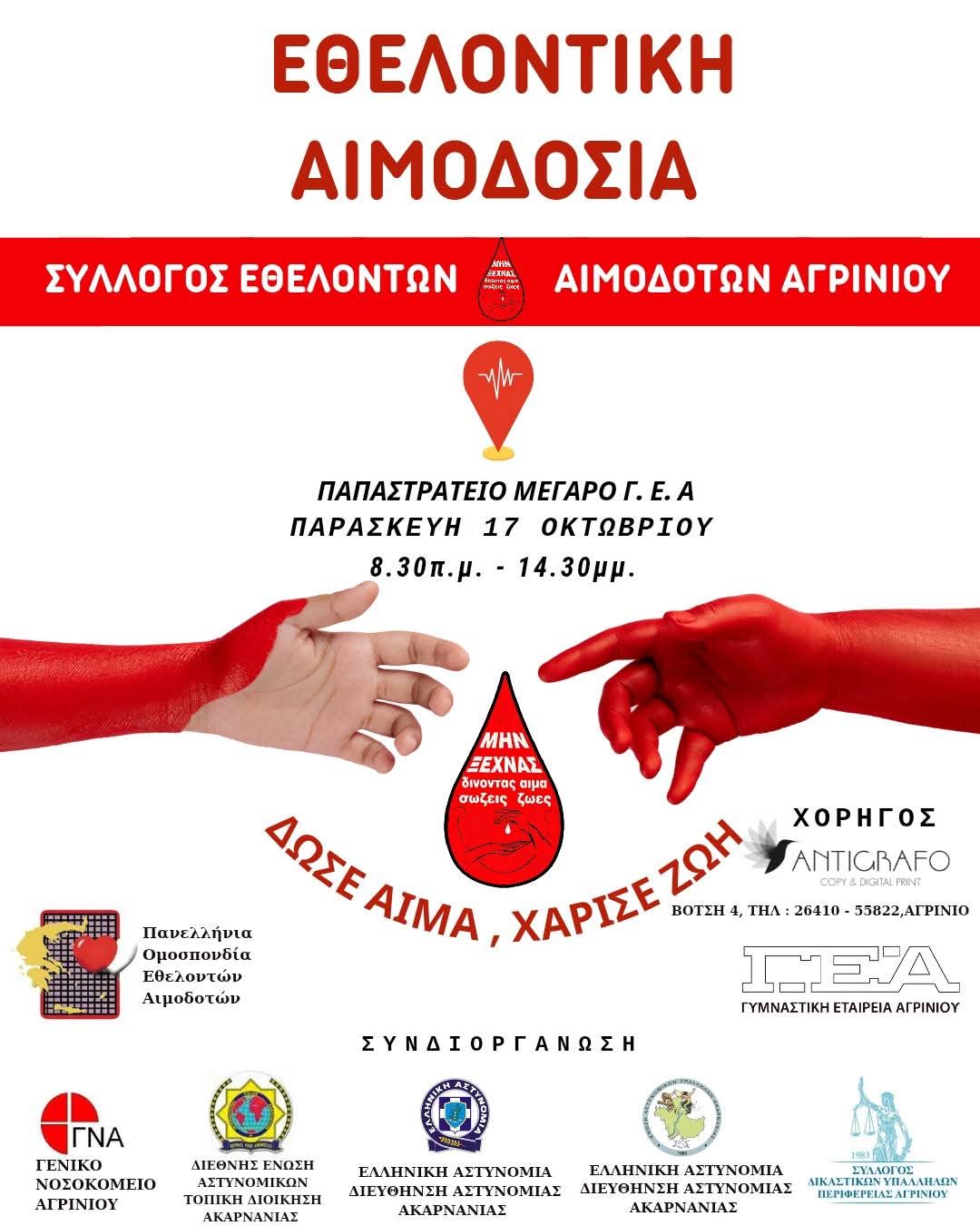 ΑΓΡΙΝΙΟ ΝΕΑ, ΕΘΕΛΟΝΤΙΚΗ ΑΙΜΟΔΟΣΙΑ, ΣΥΛΛΟΓΟΣ ΕΘΕΛΟΝΤΩΝ ΑΙΜΟΔΟΤΩΝ ΑΓΡΙΝΙΟΥ