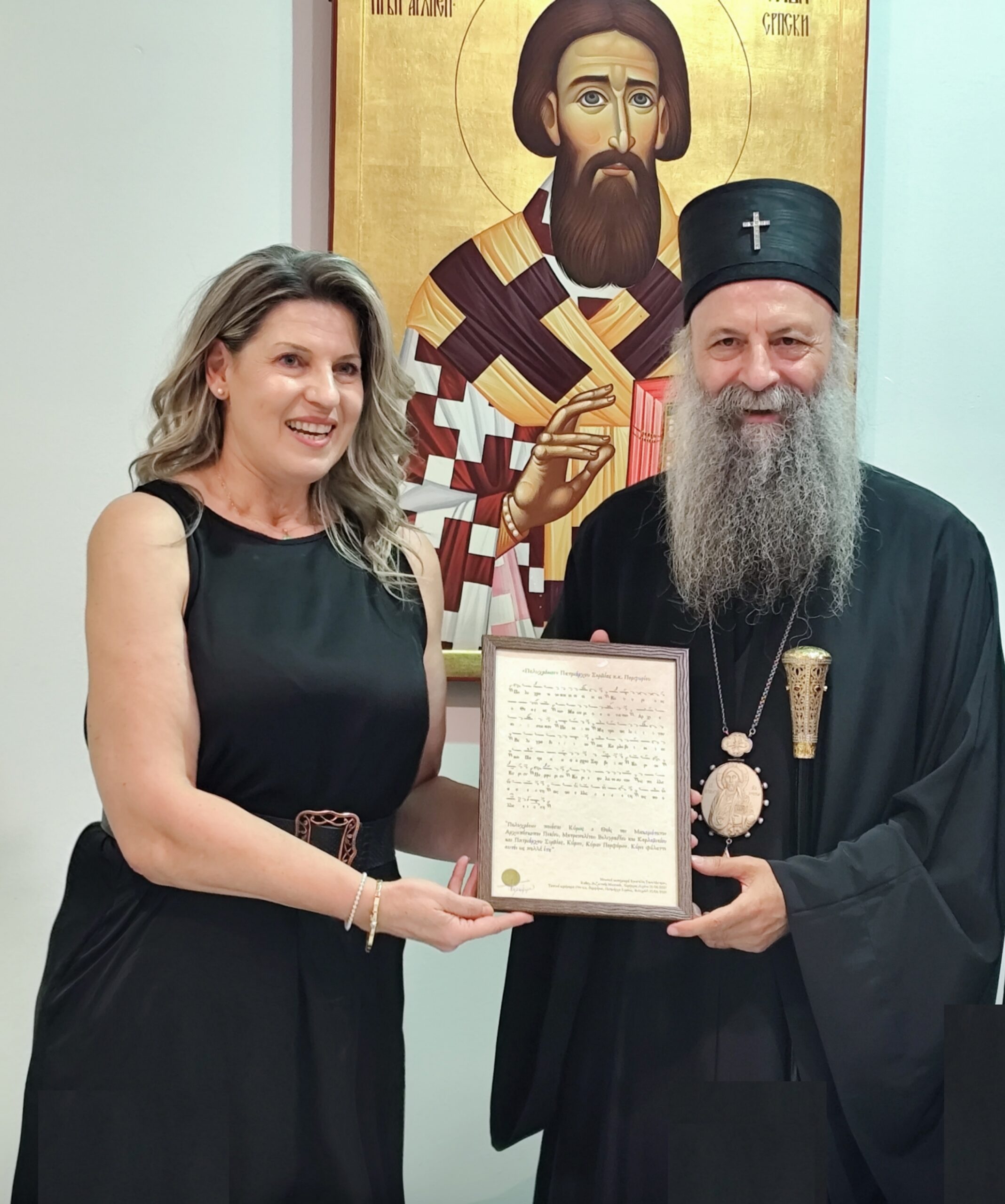 Η χορωδία συναντήθηκε με τον Πατριάρχη της Σερβικής Ορθόδοξης Εκκλησίας κ.κ. Πορφύριο στο Ενοριακό Μέγαρο του Ναού του Αγίου Σάββα όπου και η κ. Τασολάμπρου του δώρισε τη μουσική σύνθεση «Πολυχρόνιον Πατριάρχου Σερβίας» δικής της δημιουργίας. Τη μουσική σύνθεση η Χορωδία έψαλλε στον προκαθήμενο της Σερβικής Εκκλησίας και έλαβε τους επαίνους του Αγιοτάτου Πατριάρχη Σέρβων, ενώ στην κ. Τασολάμπρου δώρισε ασημένια εικόνα του Αγίου Σάββα, ακριβές αντίγραφο της εικόνας του Αγίου Σάββα από το εικονοστάσι του Ναού στο Βράτσαρ, εικόνα κατασκευασμένη στο εργαστήριο της Αρχιεπισκοπής Βελιγραδίου.