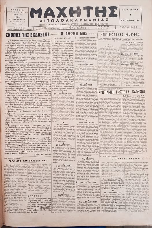 Από το ξεκίνημά της, η εφημερίδα Μαχητής δήλωνε ξεκάθαρα την αποστολή της: να δώσει βήμα στους ανθρώπους του Αγρινίου και της Αιτωλοακαρνανίας.