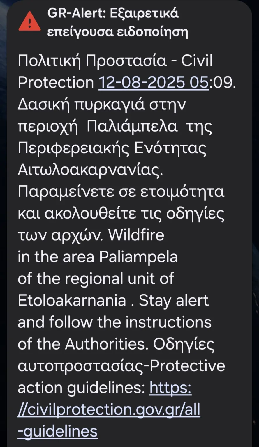 Οι κάτοικοι αρχικά έλαβαν μήνυμα να είναι σε ετοιμότητα. Στη συνέχεια δόθηκε εντολή εκκένωσης για ένα χωριό.  «Αν βρίσκεστε στην περιοχή Βαρκό απομακρυνθείτε προς Παλιάμπελα», αναφέρεται στο μήνυμα.