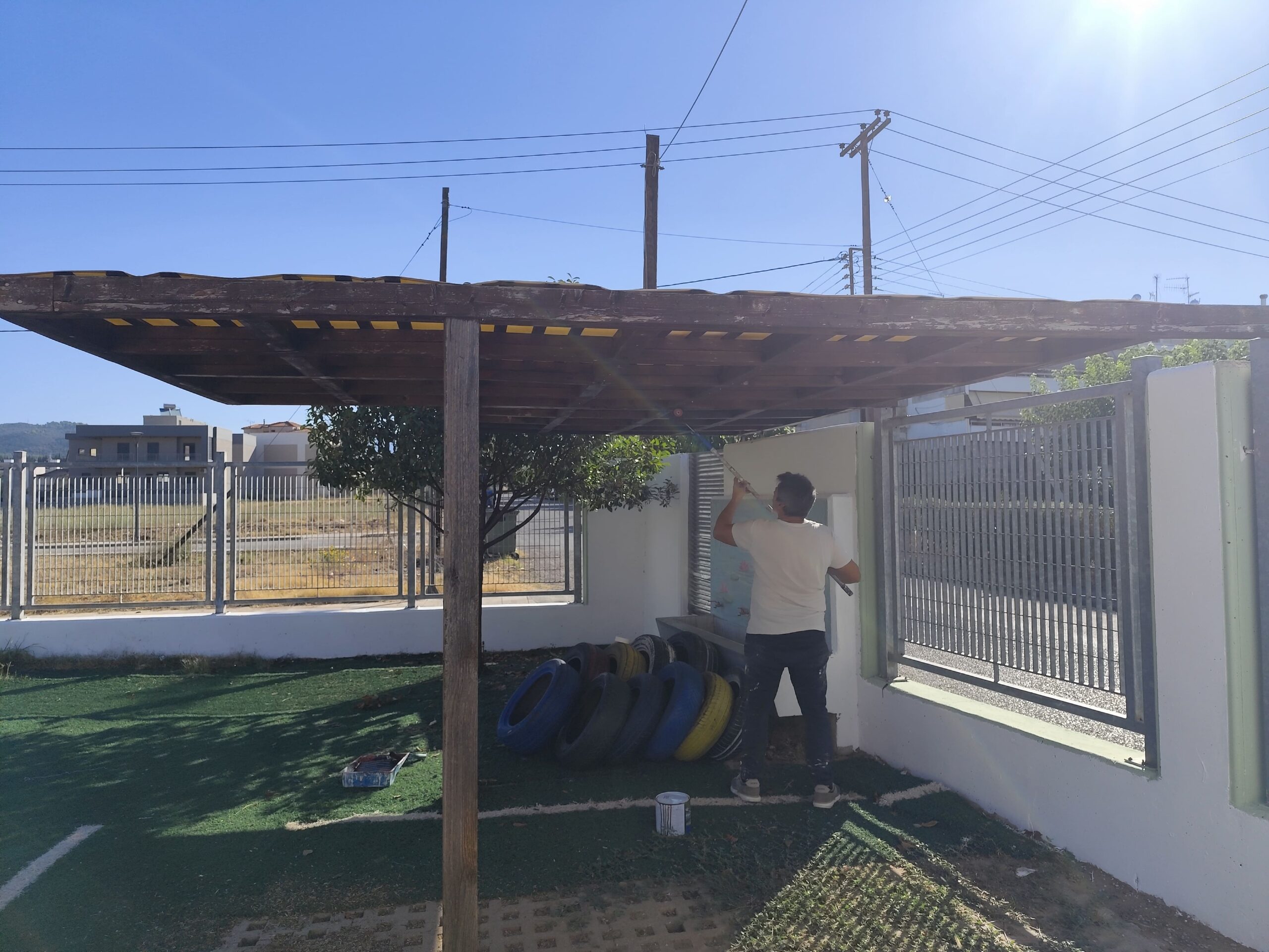 - Συντήρηση και επισκευή στο ξύλινο κιόσκι του αύλειου χώρου