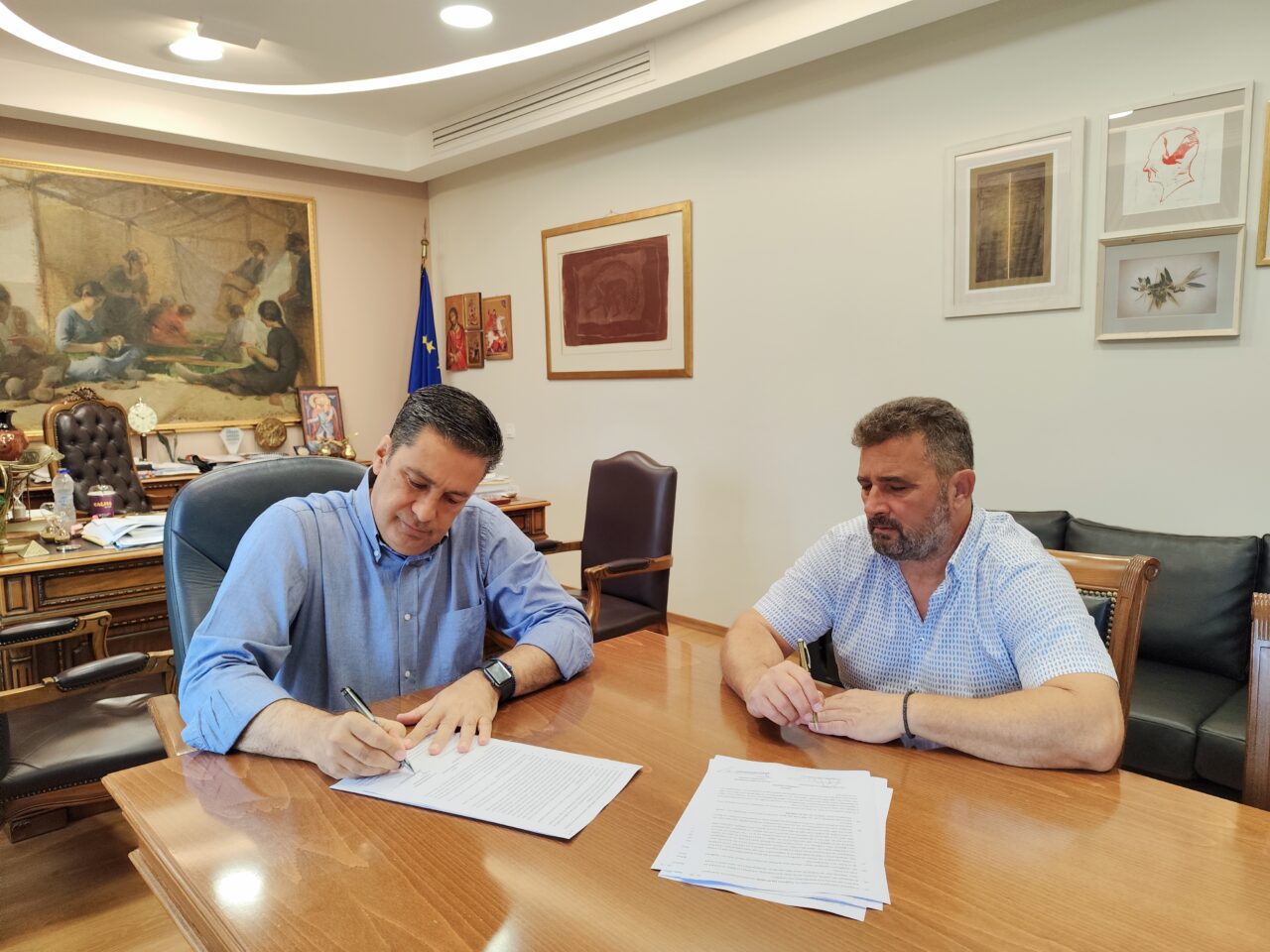 Ο Δήμαρχος Αγρινίου κ. Γεώργιος Παπαναστασίου υπέγραψε σήμερα τη σύμβαση για την εκτέλεση του έργου «Ανάδειξη και Σήμανση Πεζοπορικών Μονοπατιών στον Δήμο Αγρινίου», παρουσία των εκπροσώπων της αναδόχου εταιρείας και στελεχών της Τεχνικής Υπηρεσίας του Δήμου.